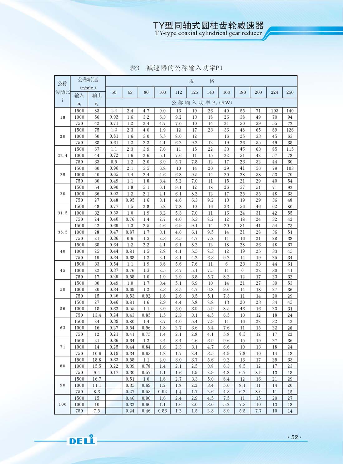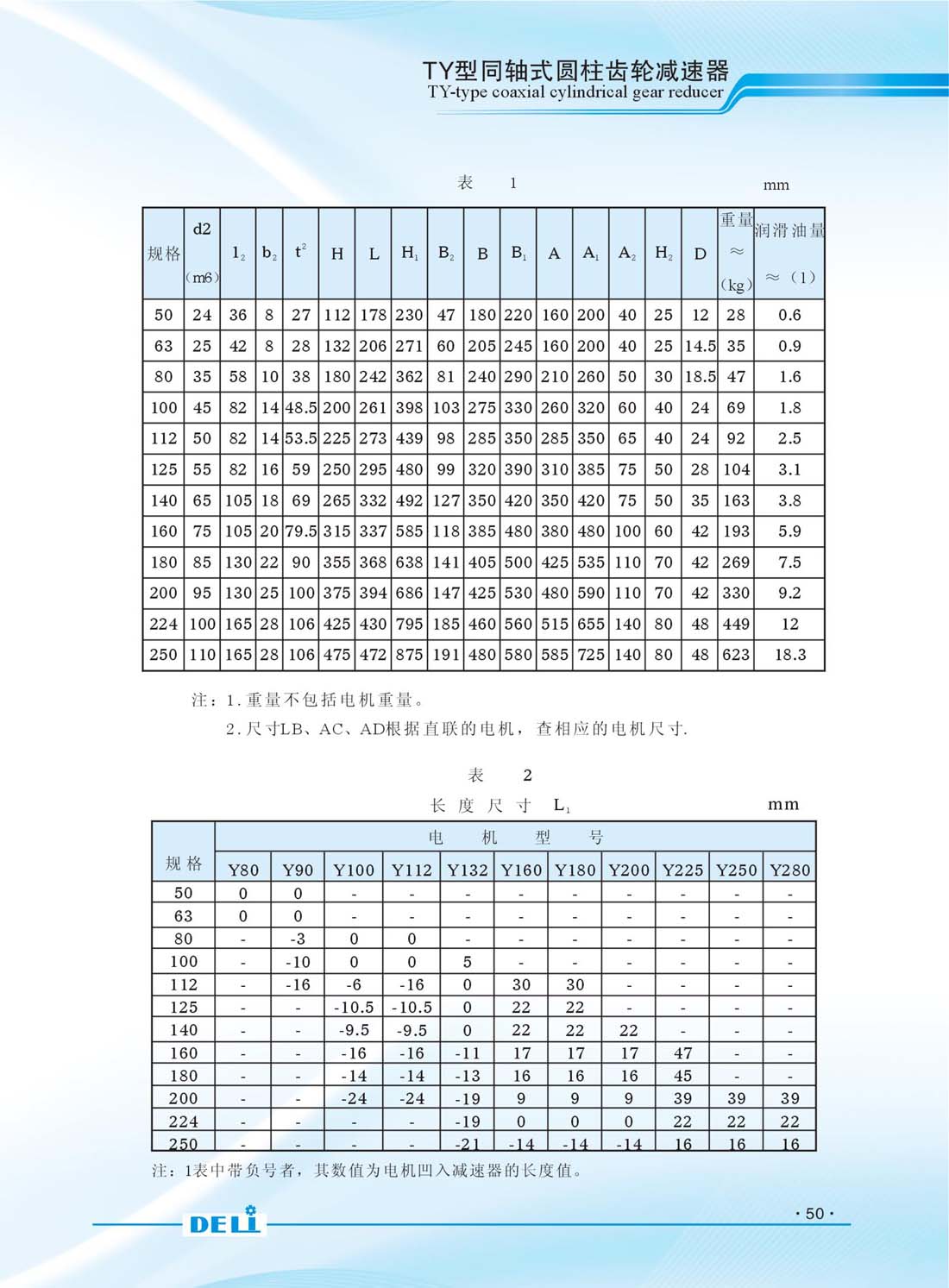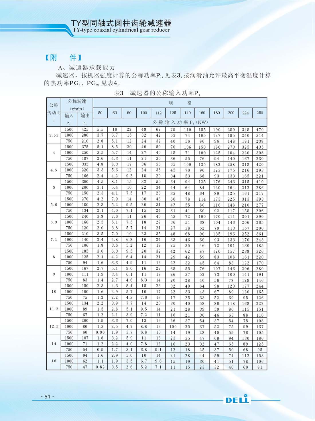TY系列同軸式硬齒面齒輪減速器是理想的動(dòng)力傳送裝置,它廣泛用于冶金、礦山、化工、紡織、儀器、能源、建材等行業(yè)。減速器的齒輪圓周速度不大于20m/s,允許正、反轉(zhuǎn)。使用于水平臥式安裝,前 后傾斜角不大于20。直聯(lián)電機(jī)為Y系列三相異步四級(jí)電動(dòng)機(jī),電機(jī)的安裝型式為B5或B35;工作環(huán)境溫度為0攝適度-40攝適度。 減速器的型號(hào)TY50/TY63/TY80/TY100/TY112/TY125/TY140/TY160/ TY180/TY200/TY224/TY250